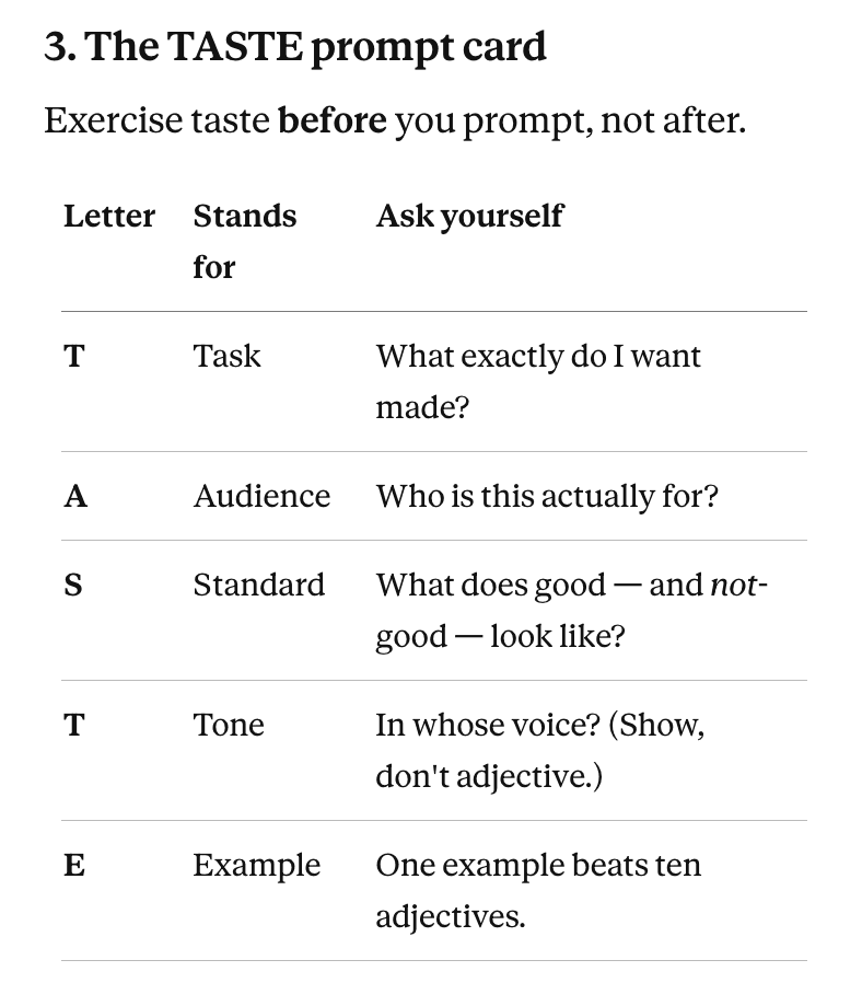 Exercise taste before you prompt, not after.